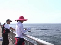 遼(はるか)ちゃんの隣では、この海釣り公園の常連さんがメジナを釣りあげました。「よ~っし、わたしも負けてられない!メジナさん、たくさん釣って先生を驚かしちゃお?!」